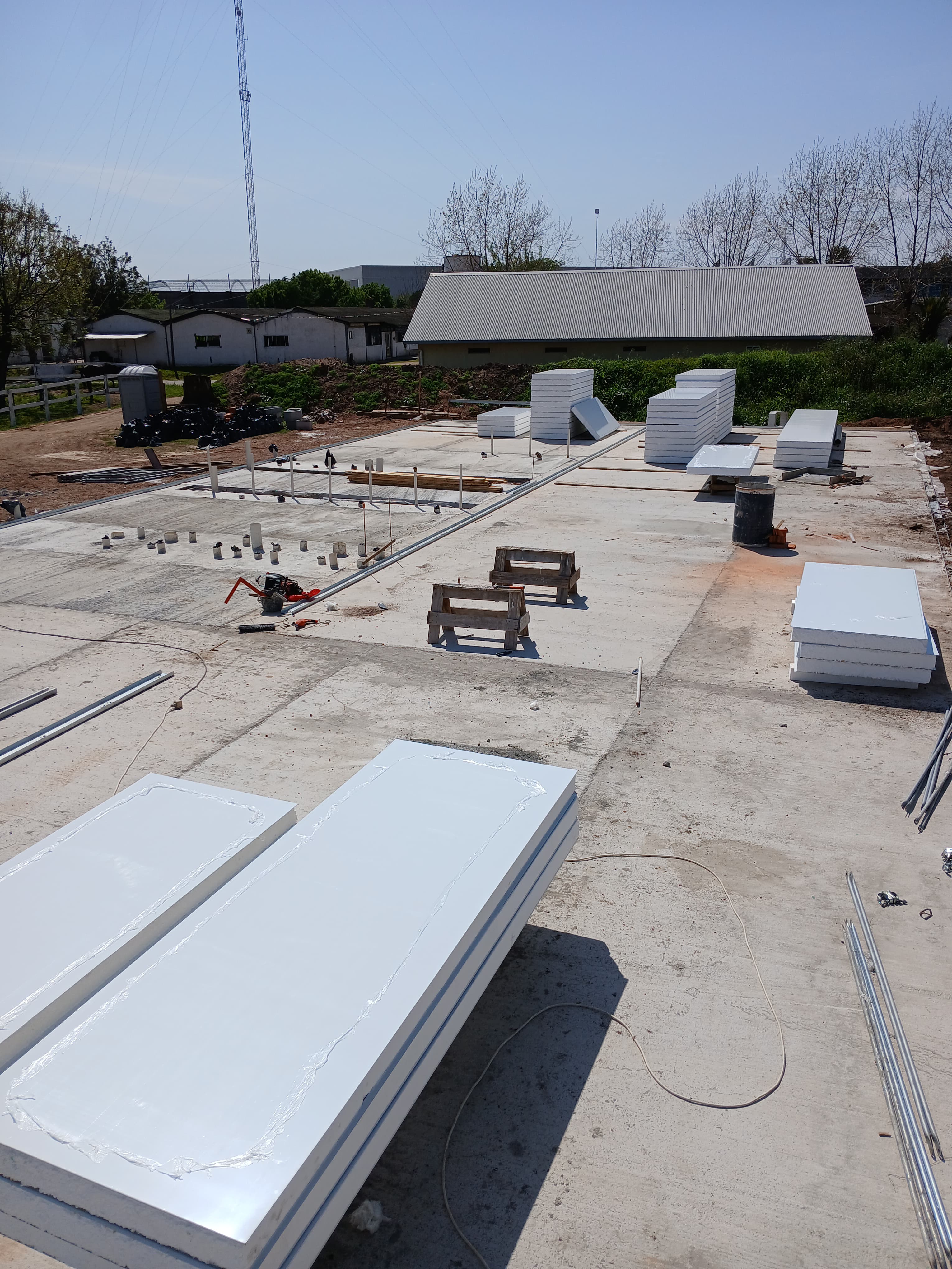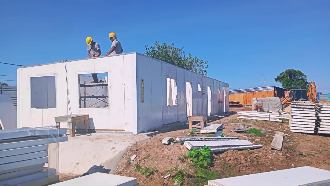 Construcción realizada en isopanel, contando con baños y oficinas. Trabajo realizado para la empresa Campiglia.