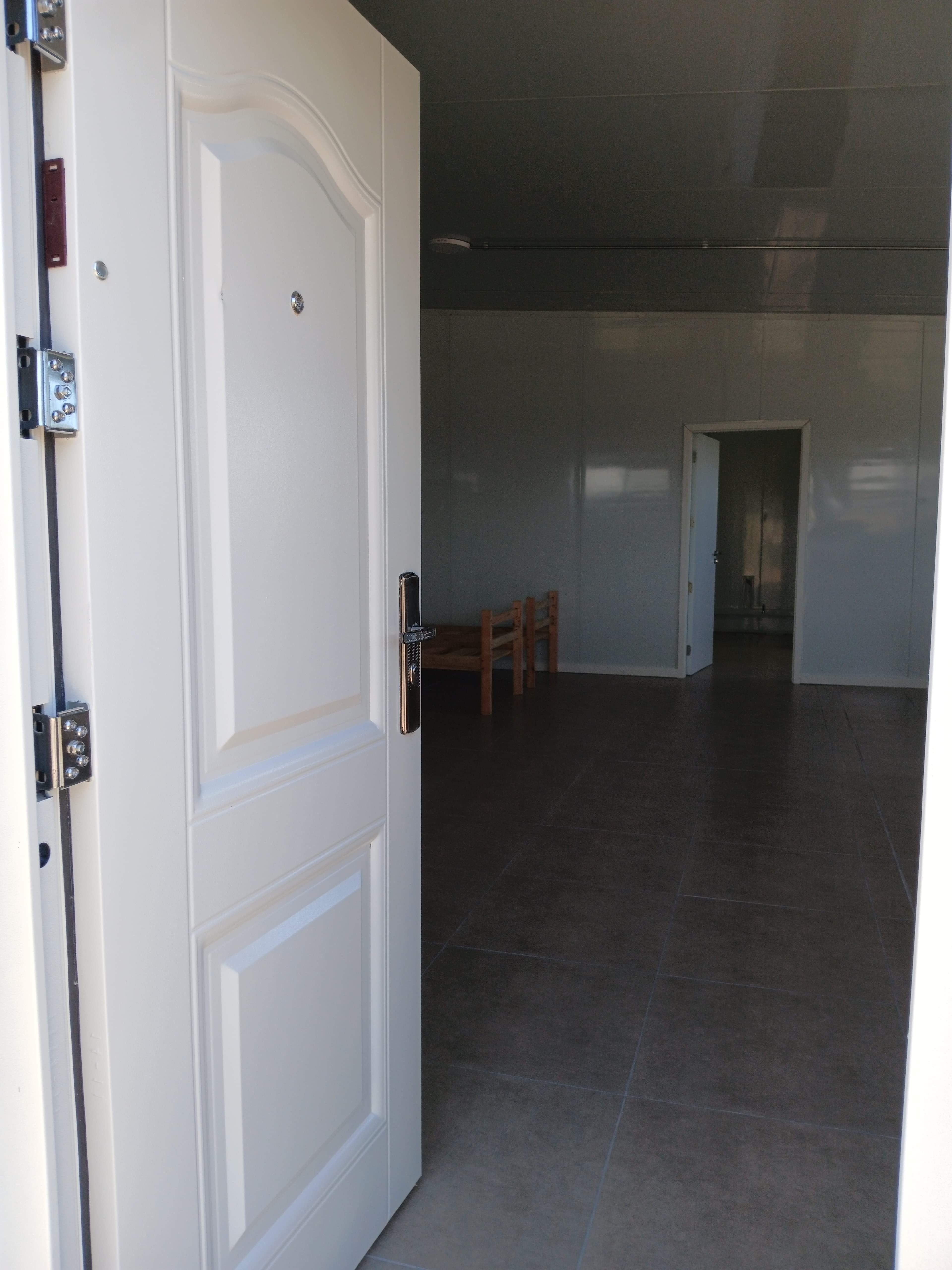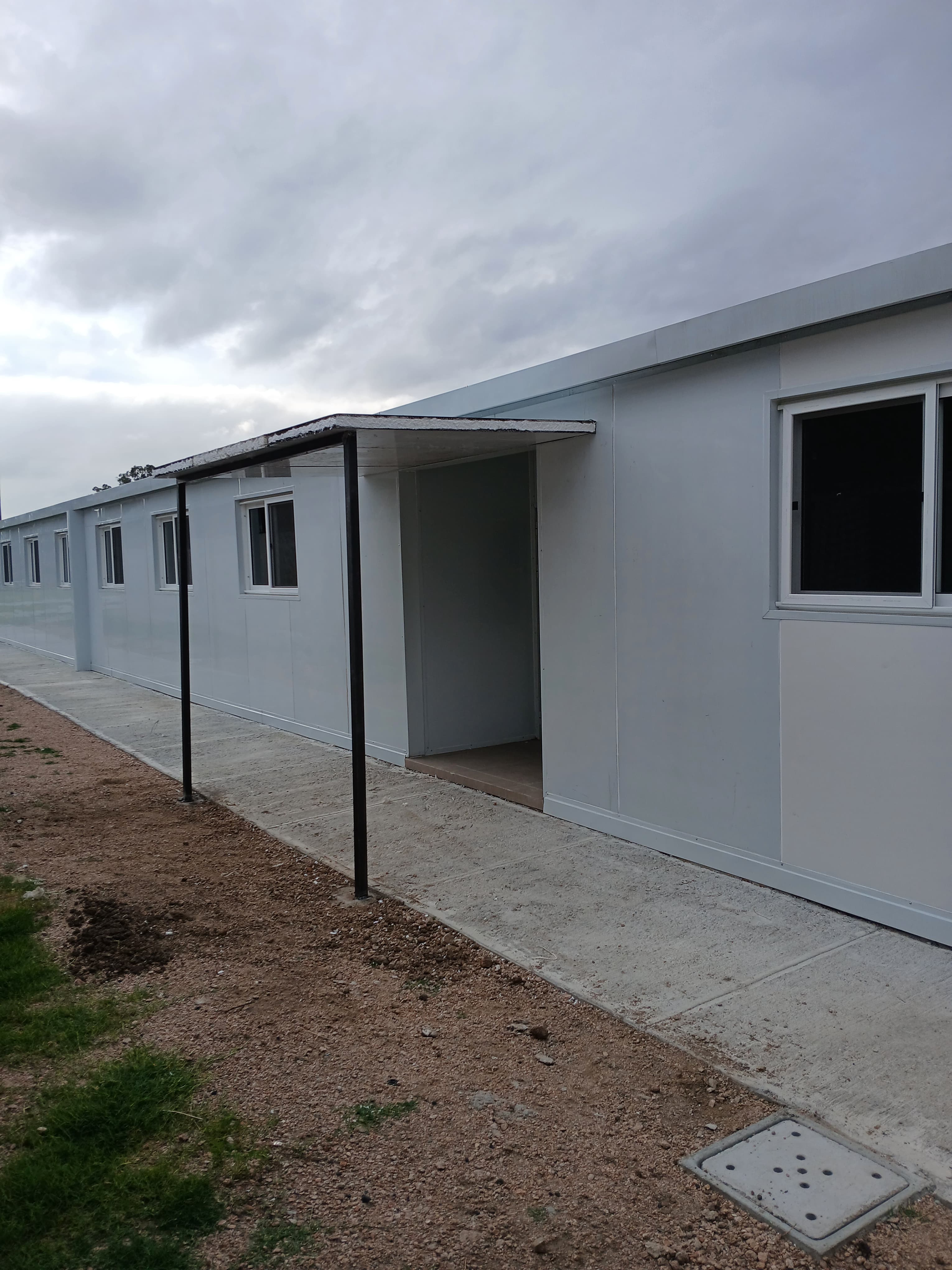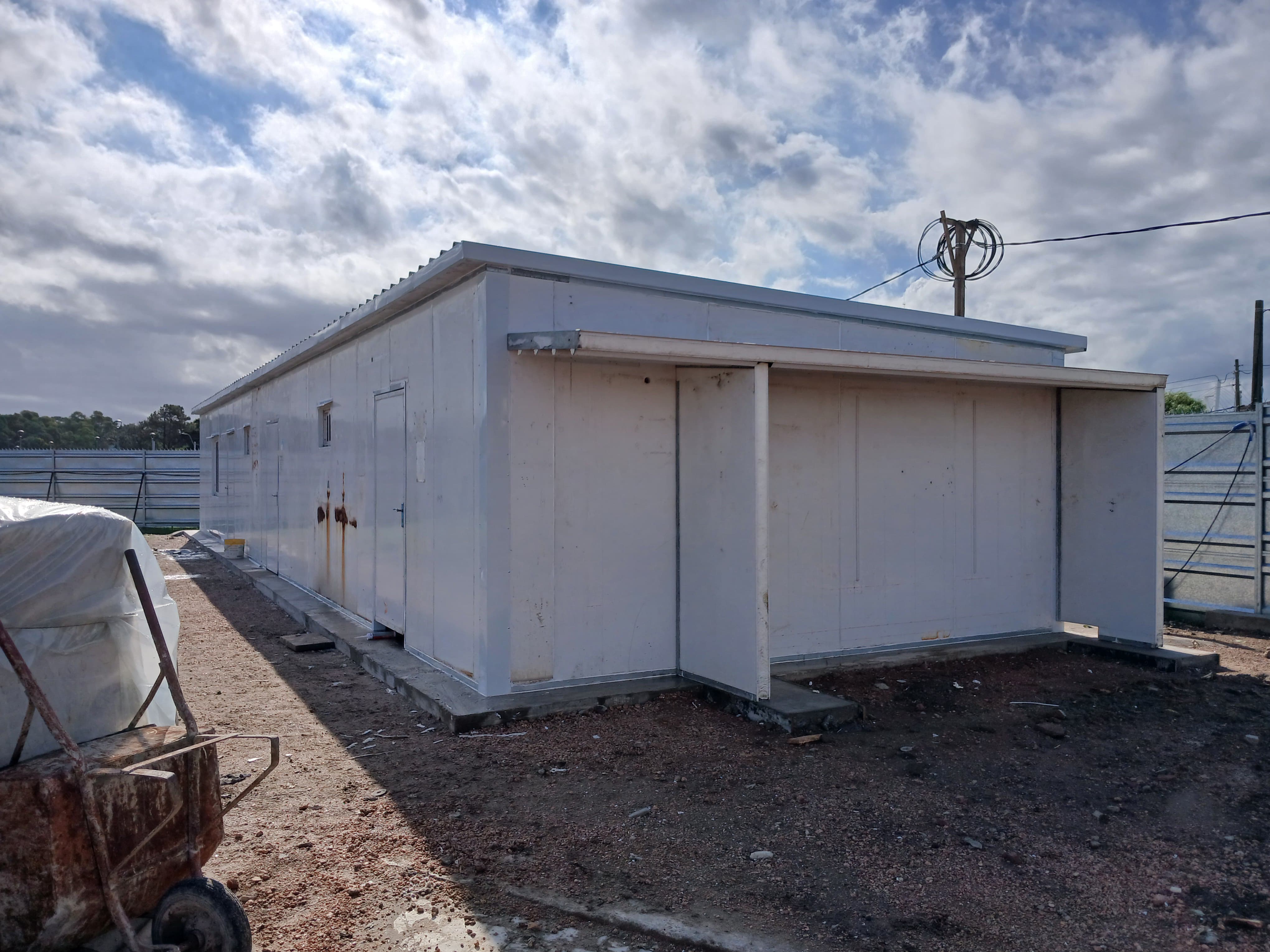 Construcción realizada en isopanel, alojamiento de 520m2 para la escuela de formacion de la Guardia Republicana contando con baños y duchas para mas de 100 personas
